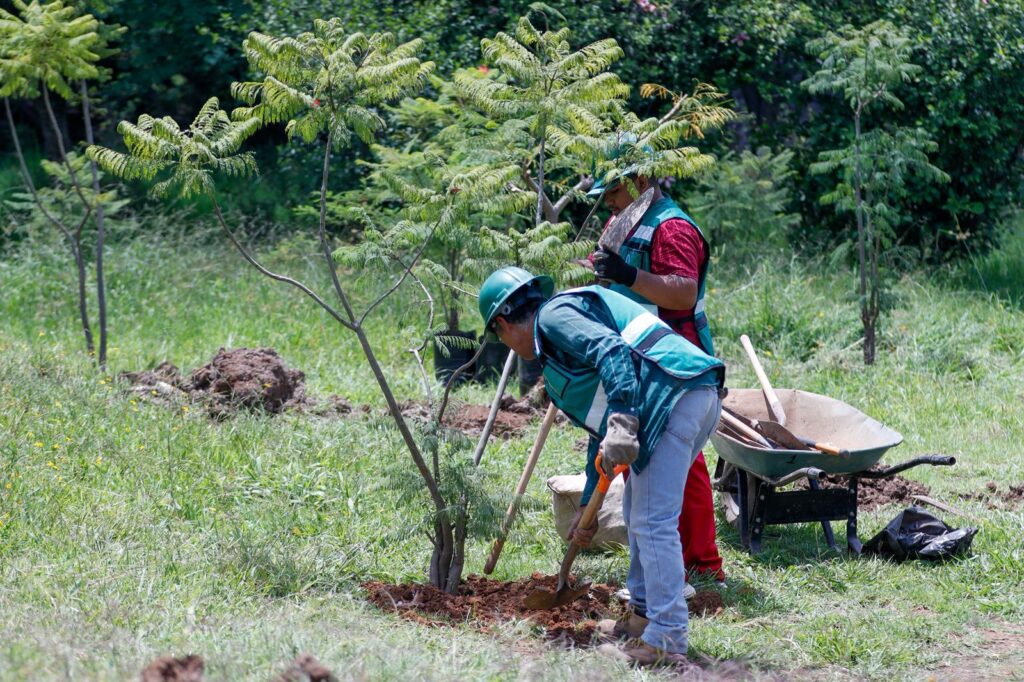 Morelia, Michoacán, 21 de agosto de 2025.– Como parte del proceso de compensación ambiental por la construcción del distribuidor vial de salida Pátzcuaro, la Secretaría de Comunicaciones y Obras Públicas reubica 106 árboles en zonas aledañas.