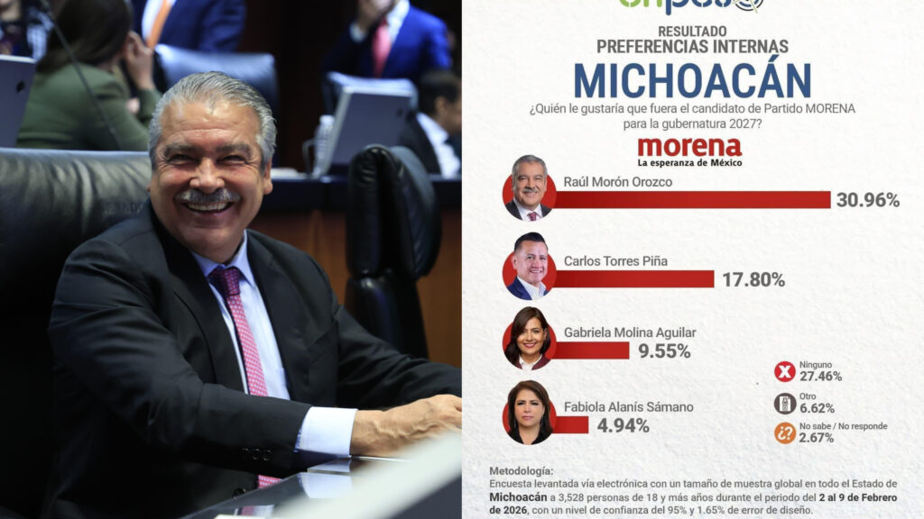 Raúl Morón Orozco se perfila para ser el coordinador estatal de Defensa de la 4T en Michoacán, al registrar una ventaja de 2 a 1 en las preferencias sobre su más cercano rival, Carlos Torres Piña, de acuerdo a la encuesta más reciente de la firma Cripeso.
