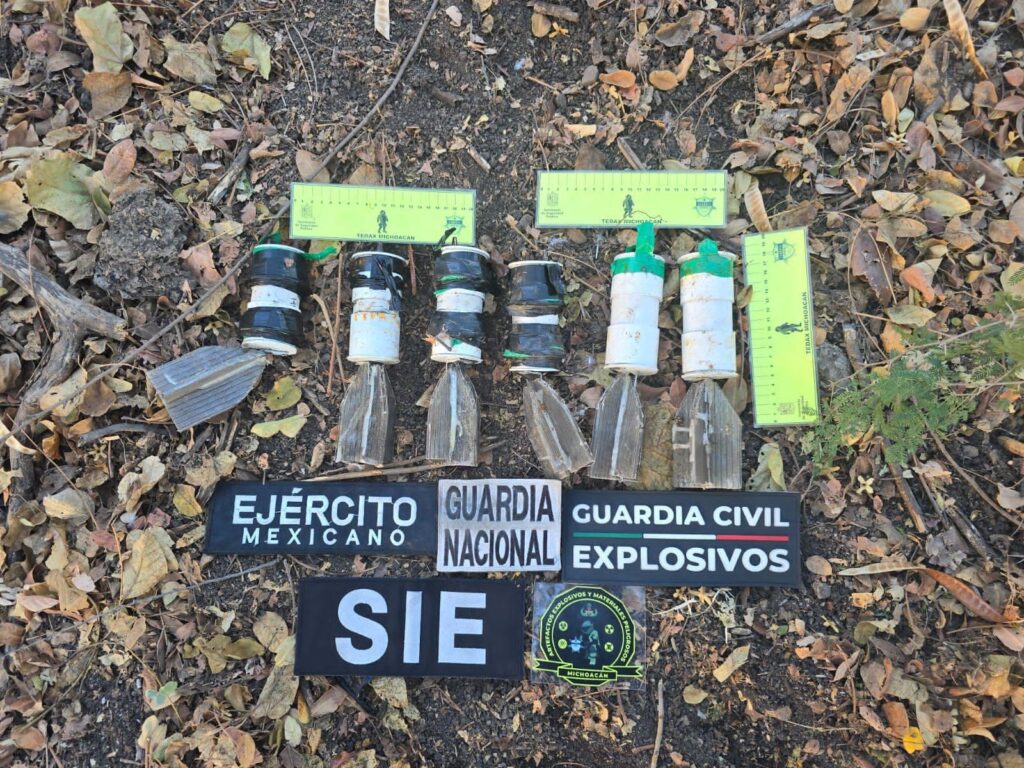 Estos artefactos improvisados son elaborados para lanzarse mediante drones, los cuales fueron encontrados por elementos de la Guardia Civil, del Ejército Mexicano y la Guardia Nacional, durante recorridos en zonas serranas de la localidad de Santa Ana Amatlán.