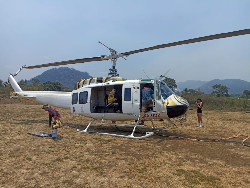 Señaló que el Gobierno del Estado ha destinado el equipamiento y personal para las labores de combate, acciones que se llevan a cabo por aire con el despliegue de una aeronave acondicionada con un helibalde y por tierra con las brigadas.