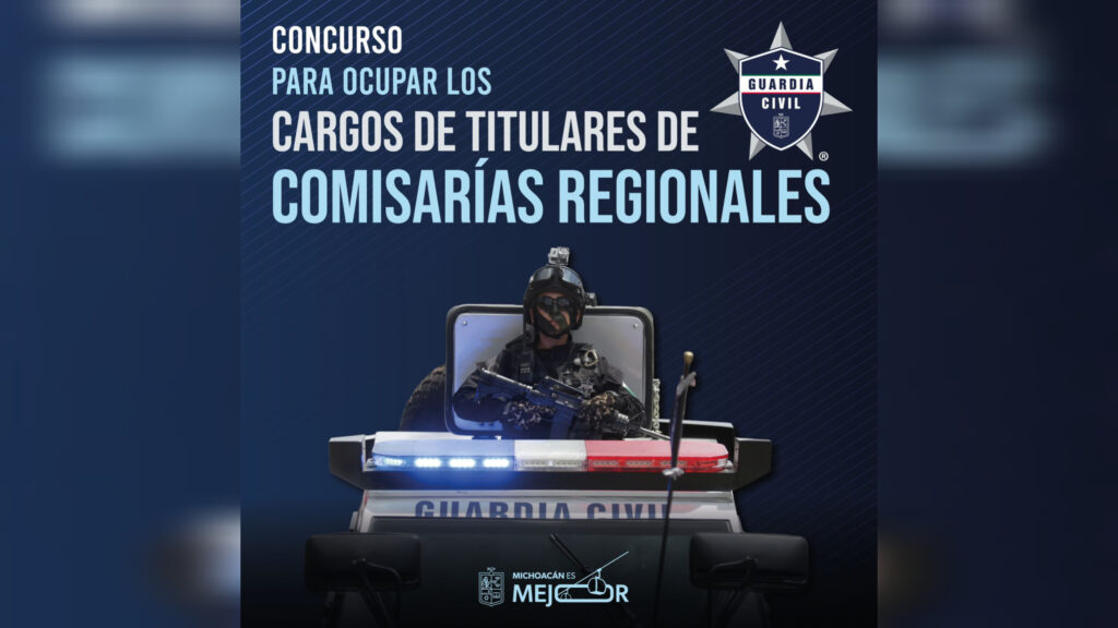 Morelia, Michoacán, 26 de noviembre del 2025.- Por primera vez, la Secretaría de Seguridad Pública (SSP) abre una convocatoria para seleccionar los perfiles idóneos y mejor cualificados que ocuparán altos mandos dentro de la institución. El proceso incluye la designación de Comisarías Regionales, Coordinaciones de Agrupamientos y de Seguridad Vial, además de once jefaturas especializadas, entre ellas: Agrupamiento Canino y Equino, Ciclista, Lacustre, de Proximidad Social, Forestal y Ambiental, de Ordenamientos Judiciales, de Restablecimiento del Orden Público, Turístico, de Búsqueda de Personas, Táctico Operativo, y de Protección.