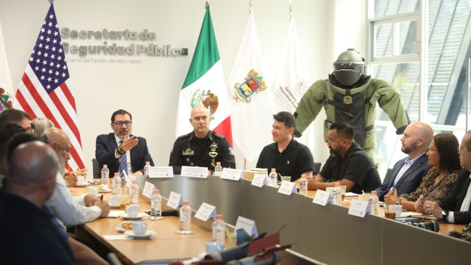 Morelia, Michoacán, 22 de mayo del 2025.- Con la premisa de continuar con el intercambio de conocimientos, mantener capacitaciones constantes y combatir la producción de artefactos explosivos improvisados por parte de la delincuencia organizada, el titular de la Secretaría de Seguridad Pública (SSP), Juan Carlos Oseguera Cortés, sostuvo una mesa de trabajo con autoridades del Gobierno de Estados Unidos.