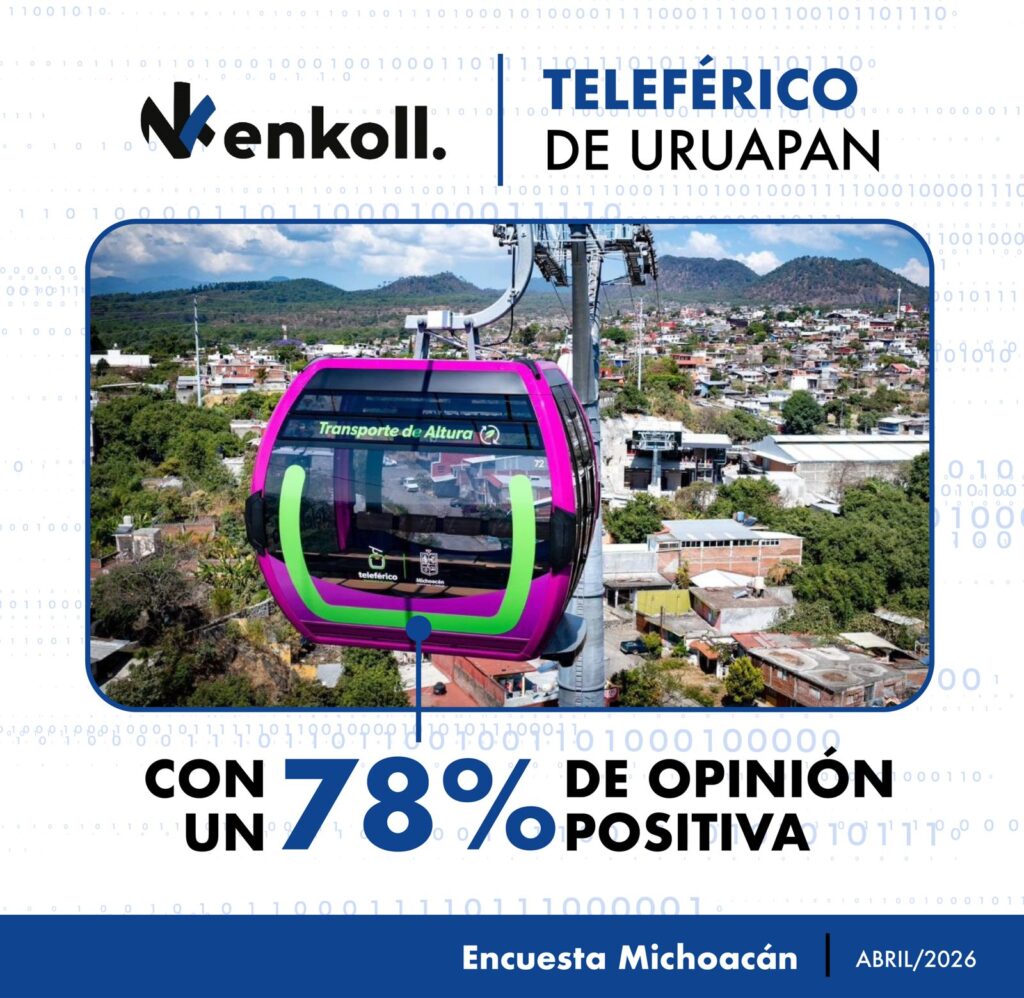 Morelia, Michoacán, 14 de abril de 2026.- El 78 por ciento de los uruapenses que fueron consultados por la empresa Enkoll, externaron una opinión positiva sobre el teleférico, medio de transporte seguro, ecológico e inclusivo que entrará en funcionamiento el próximo 18 de abril con su inauguración a cargo del gobernador Alfredo Ramírez Bedolla.