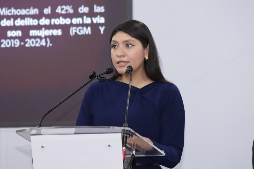 Morelia, Michoacán, 20 de octubre de 2025.-En conferencia de prensa encabezada por el gobernador Alfredo Ramírez Bedolla, la secretaria de Igualdad Sustantiva y Desarrollo de las Mujeres Michoacanas, Alejandra Anguiano González, presentó la estrategia Zonas Seguras Las Solidarias, un programa inédito que busca garantizar espacios seguros y de resguardo para mujeres, adolescentes y niñas que enfrenten una situación de riesgo en la vía pública.
