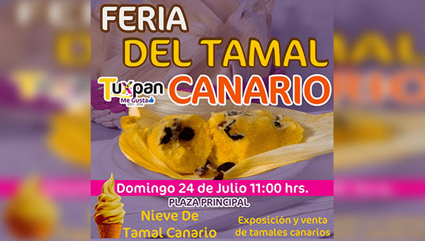 Tuxpan, Michoacán.- El municipio de Tuxpan, Michoacán, llevará a cabo la “Primera Feria del Tamal Canario” este próximo domingo 24 de Julio.