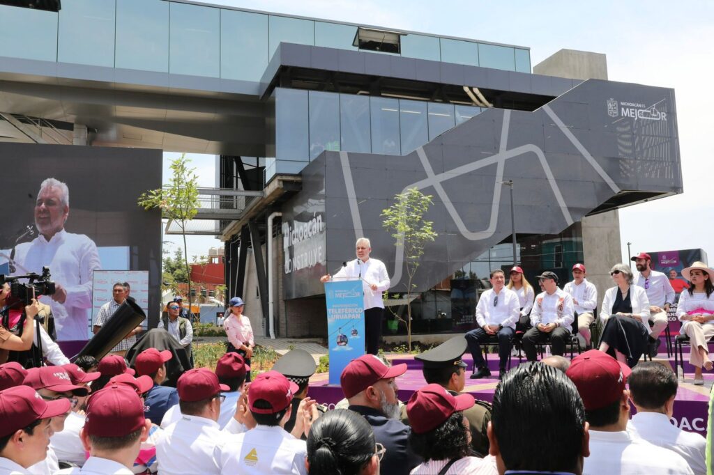 Inspirado en el cablebús de Ciudad de México, el teleférico devolverá a la ciudad su vocación turística, afirmó el gobernador. “Uruapan va a volar alto, vamos a recuperar lo que se perdió por décadas; es un destino turístico de alto nivel, van a volver los turistas, el teleférico los va a traer y será un impulso a la economía”, apuntó el mandatario.